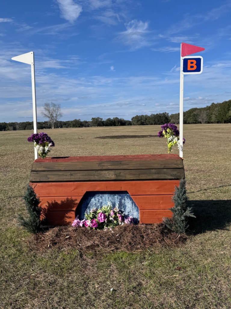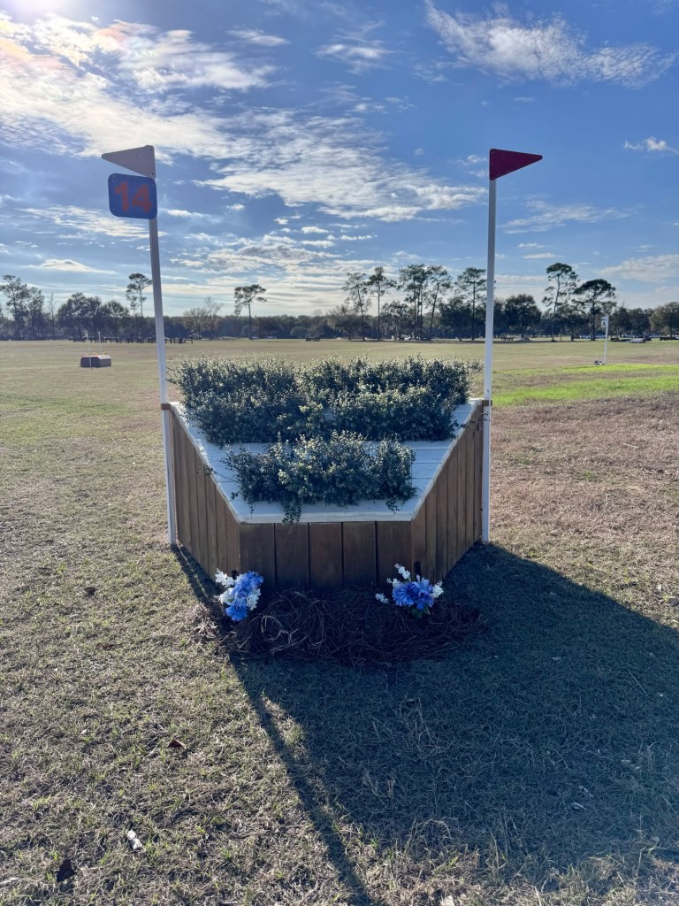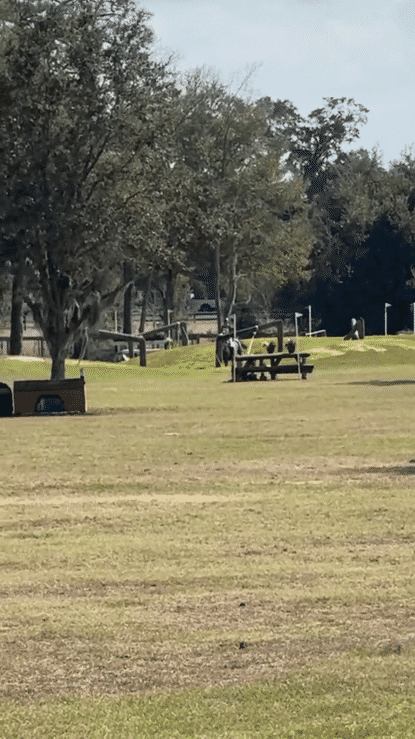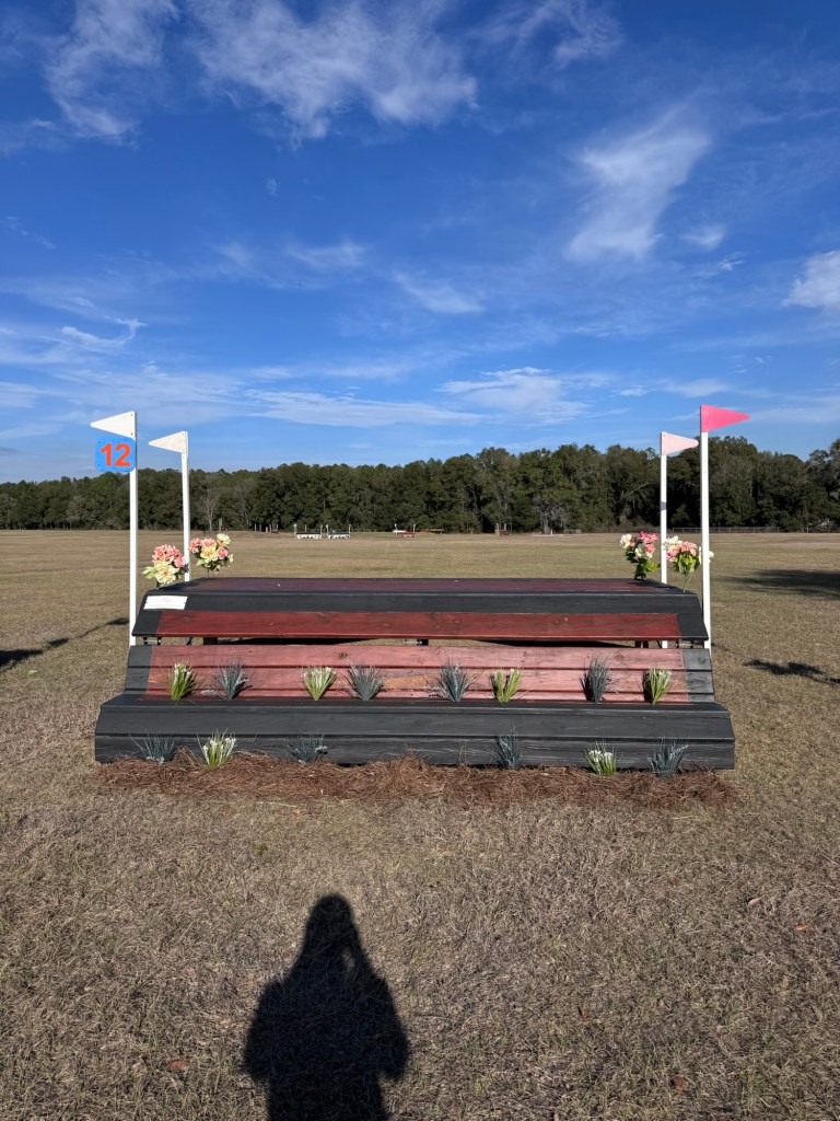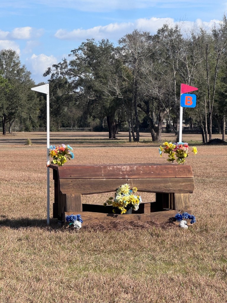 FHP was watering and aerovating like crazy! The ground felt great.decent size jump 2, shared with Plog box with only 8-10 strides to 4AB4 strides A to B skinny table at B was slightly angledstraightforward log table6AB – the crater. Steep downhill after A, up through the crater with 90 degree turn left to BB was a cornerthe MIM table8ABC, the coffin.2 downhill strides from A to B, then two uphill strides to an angled brush at C9 – a small but BRAND NEW trakehnerthey really dug a wholeass new ditch in the middle of the field, man10 A- house in the water, 5 or 6 bending strides to… 10B, a skinny logthis one is often the last jumpthe big collapsible table I used to not be able to make direct eye contact with13A, house at the top of the crater – you can see B up on the lip on the other side, the skinny tablethar she blowsa random skinny brush chevron in the middle of nowhere15A, the second water. Log ramp with downhill landing, through the water to..15B, a skinny log ramp16A, a small house thing, 6 bending strides to B (you can see it to the right)16B- skinny brush17 – nice wide, super sloped ramp