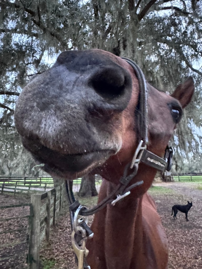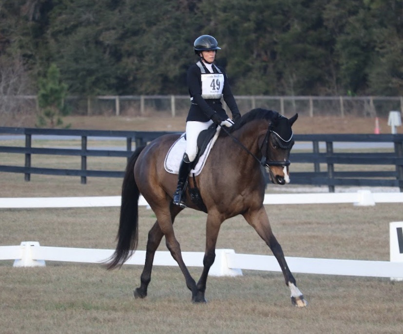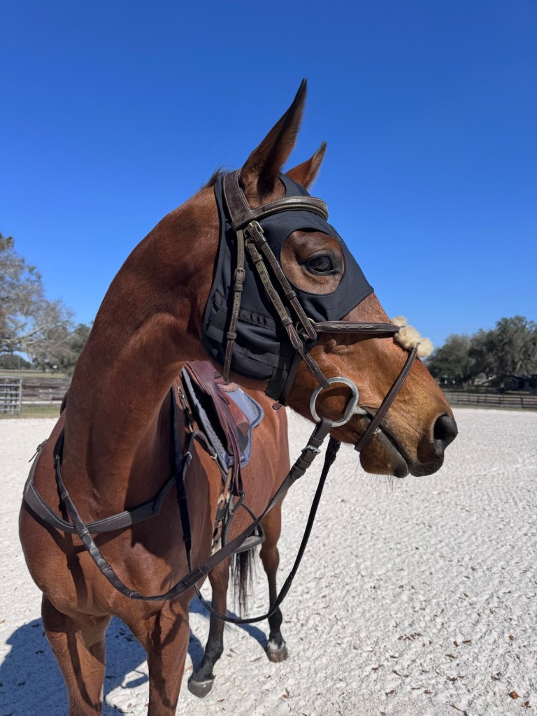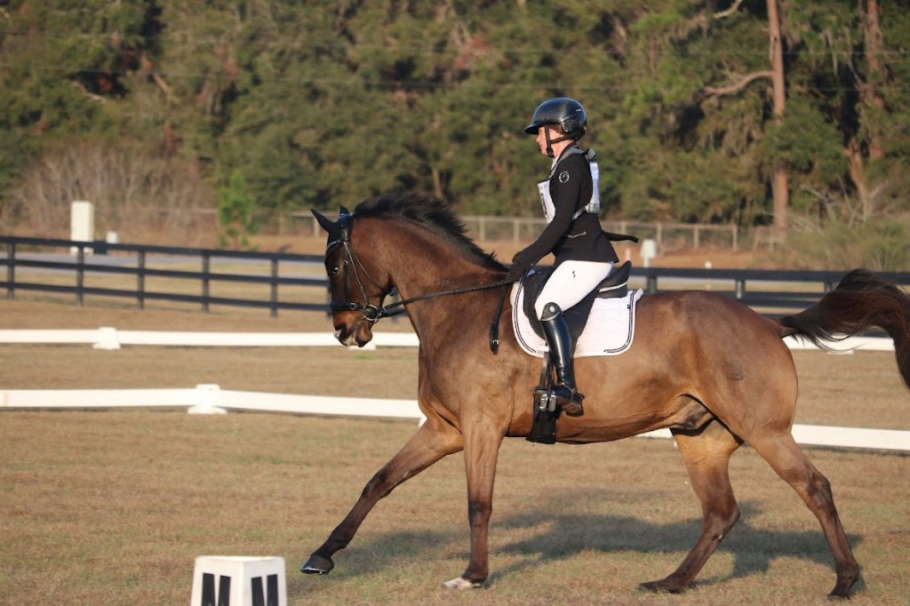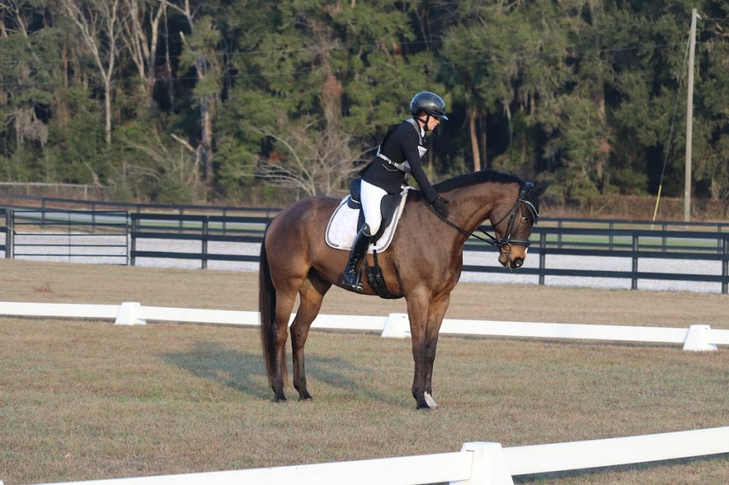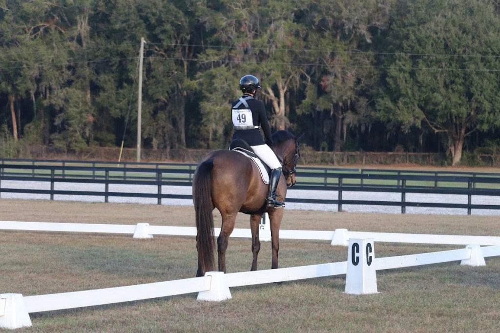 Anyway, my dressage ride time was quite early – 8:18 as the fourth horse of the day in the ring. Florida Horse Park is about a 45min drive, plus I needed time to park, groom, tack up, and put studs in since we were in a grass ring. Thus I had to leave the farm around 6:15am to make sure I wasn’t rushed. That meant I opted not to braid (let’s be real, I wasn’t gonna braid anyway, this was just an exceptionally convenient excuse). The day before I had spur of the moment decided to clip Presto again, and he got a bath, so… good enough, yes?