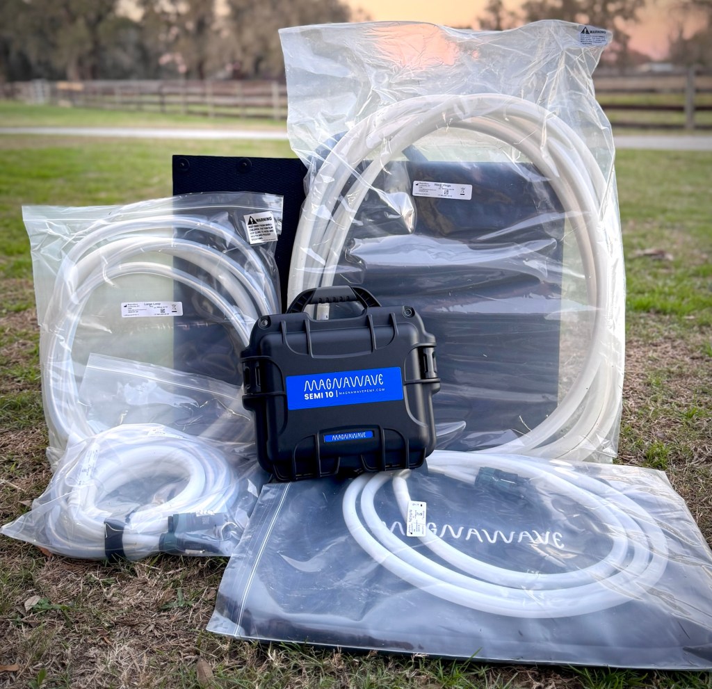 I got a lot of attachments too, some of which I haven’t used yet. I think the butterfly loop and the XL Wave Wings will probably be the most-used attachments for the horses, but I sat on the MagEnergy Mat and did my back (I have scoliosis so my back is pretty much always tight/sore) and it was great. I haven’t used the MagEnergy Guard (the big black box that horses stand on to do their feet) or the large loop yet. Their time is coming.