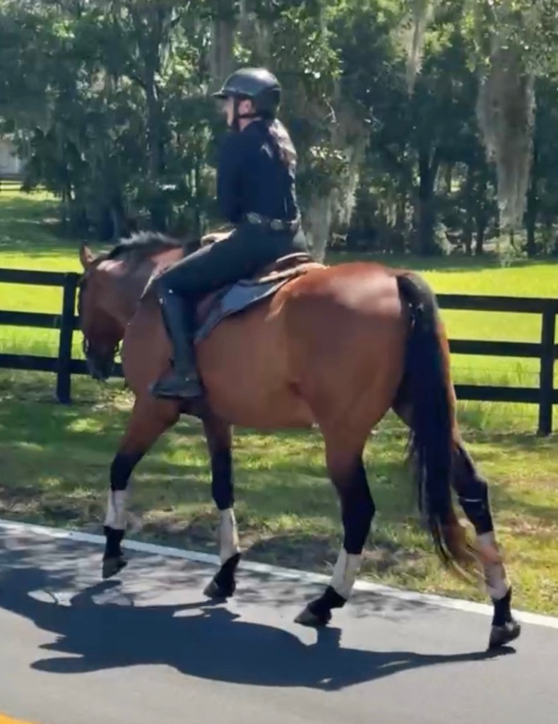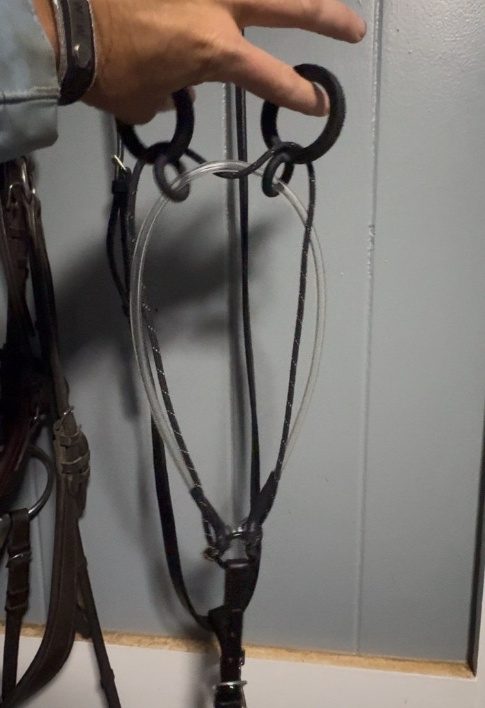 Presto also returned to his regular schedule this week after a little break post-Ocala International while I was in Kentucky. I think the little reboot was good for him (aside from the fact that he was wild for the first like… 4 rides back. He was only off work for 5 days…). He got a couple training rides last week, after which we decided to change up his tack setup a bit. He’s been in a beval bit with a running martingale for the past maybe year and half, which really worked great for him for a long time. It’s got a little bit of leverage but not too much. BUT, now that he’s gotten more rideable and we’re at a level where he needs to be taking me a bit more boldly forward, it was feeling like I had more bit than we really needed. Trainer and I agreed that it would be nice if he wanted to come forward into the hand a bit more when he was jumping.
