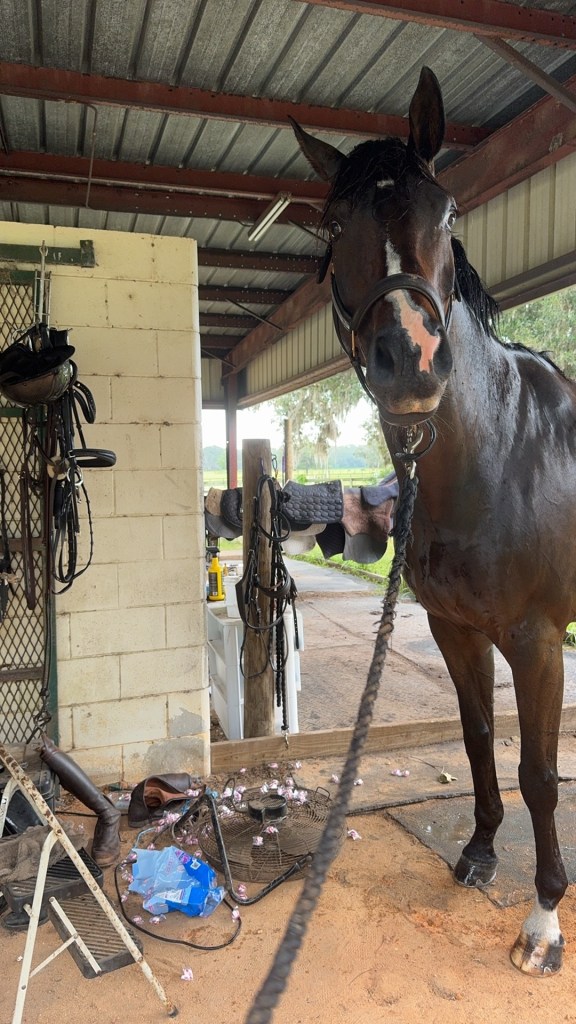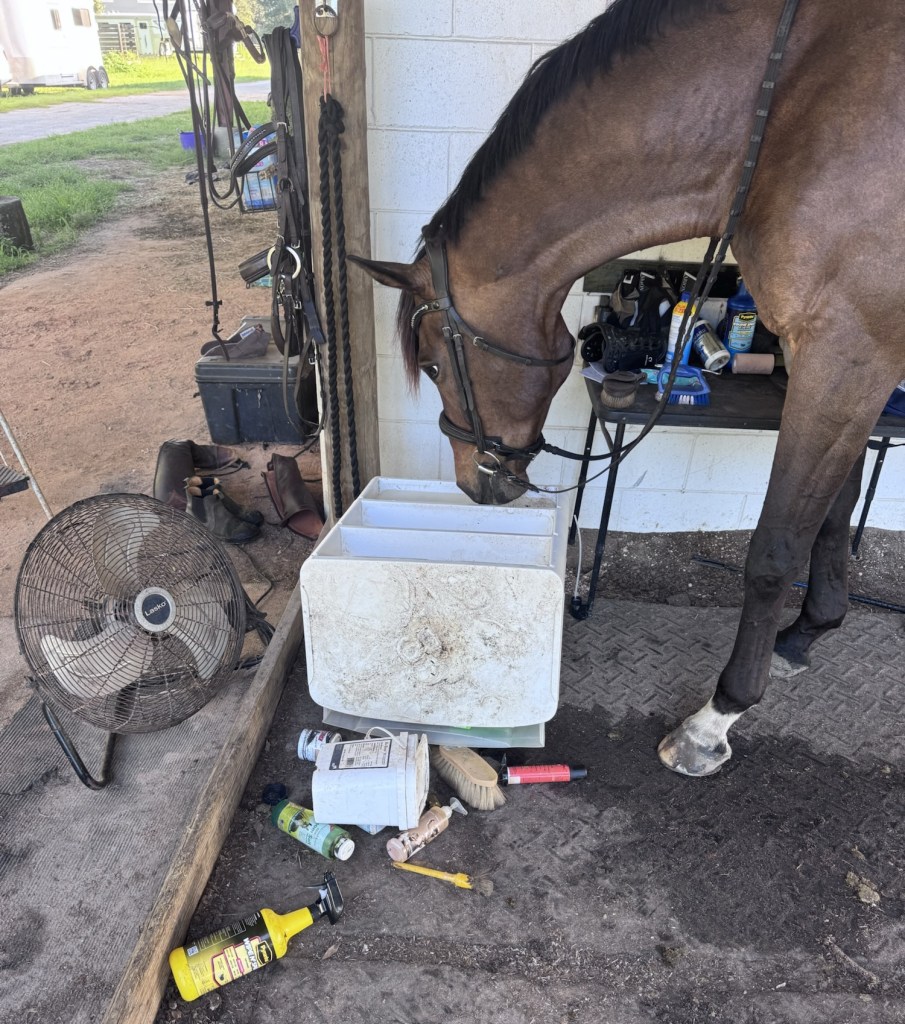 He’s got very little wall and very little sole, and his extensive multi-step hoof care routine is probably the only thing keeping him from being entirely crippled at the moment, but it’s still not great. It’s a fun juggle between keeping him inside and dry vs him absolutely climbing the walls, going batshit crazy, and then running like a dingdong when he does go outside. If he pulls a shoe and takes even a millimeter of wall with it, he’ll for sure have to go back in glue-ons, so the balance of his lifestyle is precarious right now at best.
