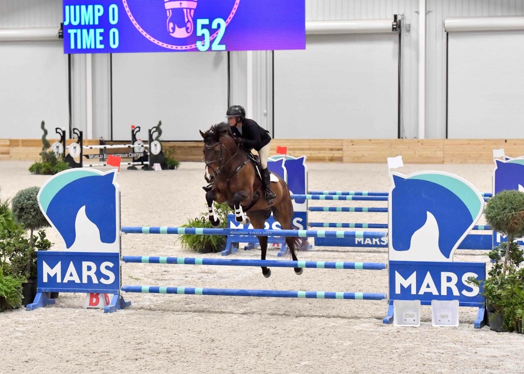 Truth be told, we really didn’t know what to expect. When he started warming up he definitely seemed a bit fresh, but Ellie quickly put him to work doing some more intricate flatwork and he settled really well. He was great for his warmup jumps, good about the traffic in warmup, and didn’t seem particularly bothered by anything. And then he went in the ring and just… marched right around. Like… we were all surprised by how good he was, actually. Ellie let him go slow and used lots of the ring so that he had time to process everything, and while he was alert, he never got worried or spooky. It was a slow but very steady and honestly quite boring (in a good way, for him) round – time faults, but no jump penalties. He really couldn’t have been any better.