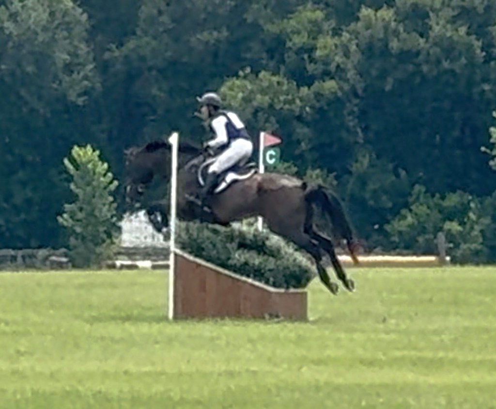 He finished in third in a big competitive open Prelim division, adding some time to his dressage score. It was a very warm and humid day, he ran XC at noon, and he’s running again this weekend at Bouckaert, so speed was not a priority. Mostly we were looking for rideability, straightness, and him wanting to take her to the fences. She did ask him to pick it up a bit on a couple of the long stretches though, and he obliged. I think his gallop is getting better too – more balanced and carrying.