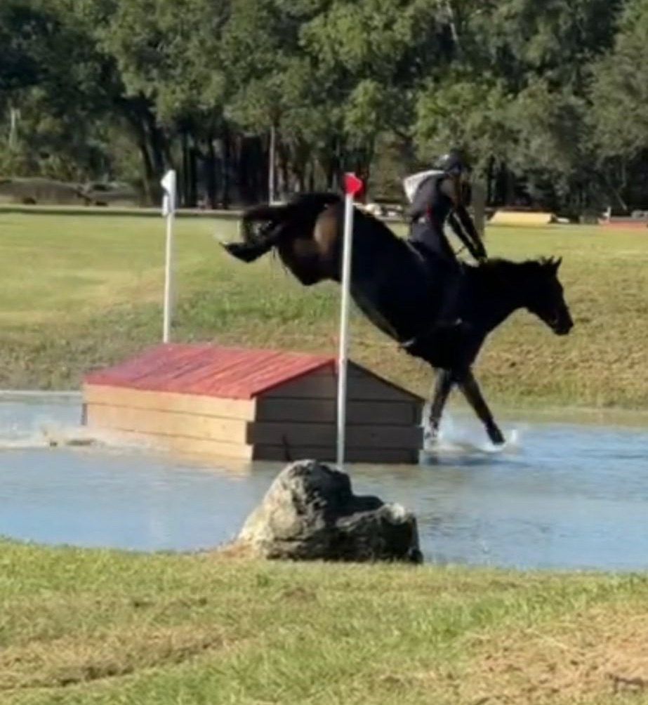 He never put a foot wrong the entire time, he was super relaxed, he was having fun, he was brave… back to normal Presto and then some. I wish I had video, because we tackled a few more technical things, like a corner to a double upbank (it took me 3 tries to get my ride right, but he was very patient about it and jumped through it without complaint even when I made mistakes), down the hill to a skinny. A coffin with 4 elements, the last of which was a skinny shoulder brush. A rolltop down into the water (he’s generally always lookier at things on the edge of the water but he was spot on fantastic to that). It wasn’t just how he was at the questions either, it was the fact that he stood on a loose rein while my Trainer’s horse went, never was anxious about her leaving him or nappy when we left her, didn’t pay any mind to the other horses that were schooling, etc etc. He was taking me to the jumps but still super rideable. I couldn’t have been more pleased with him in every regard.