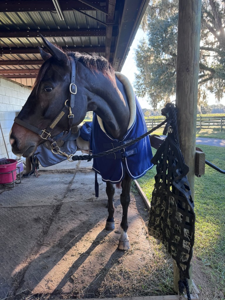 Bingo got on a trailer Monday afternoon and arrived here in Ocala on Tuesday night.