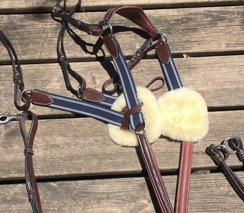 One of the first items I received was the Lund 5 point breastplate. The retail price on this is $210 Canadian, or around $158 USD. My first impressions out of the box were 1) navy elastic, hell yeah. (#teamnavy) 2) the details were very well done. Maybe it’s my h/j background but I’m a sucker for fancy stitching and padding, they make things look so much, well… fancier. I immediately inspected the edges, the backing, the stitching, and the seams, looking for quality issues. Just because it’s relatively inexpensive doesn’t mean it should look cheap – I don’t want to see any loose, crooked, or uneven stitching, rough edges, leaking glue, uneven straps, fake sheepskin, thin elastic, or cheap hardware. Luckily I found none. Nary a stitch was out of place, the sheepskin was gorgeous, and the elastic was thick and multi-layered. So far, so good.