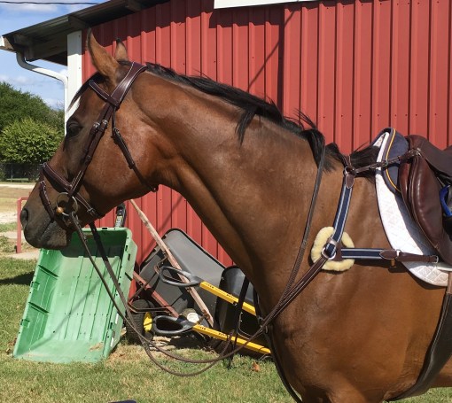 My only minor whine is the color of the leather – I am not Australian Nut’s #1 fan. I prefer a darker Havana, but I know that most of the h/j world (and probably many eventers as well) prefer the slightly lighter, redder tone. I’ve had a little luck darkening it so far, and having owned a Sedgwick bridle in this exact color before, I know that it will darken more with age. The color is fine as-is, I’m just a bigger fan of darker tack. Personal choice.